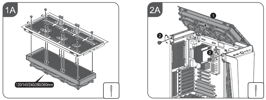 В корпусе можно установить до трех радиаторов: спереди — до 360 мм, сверху — до 280 мм.