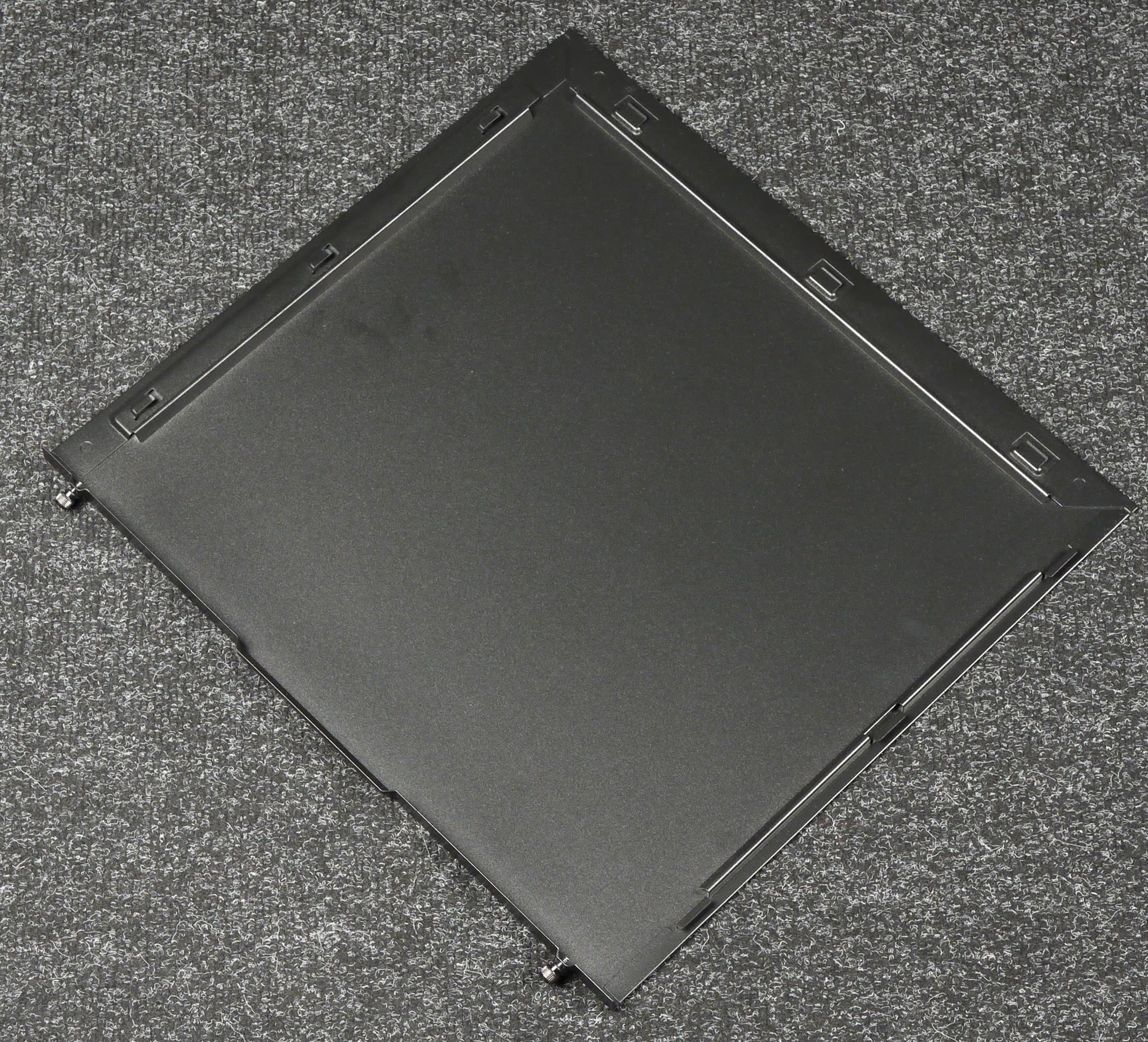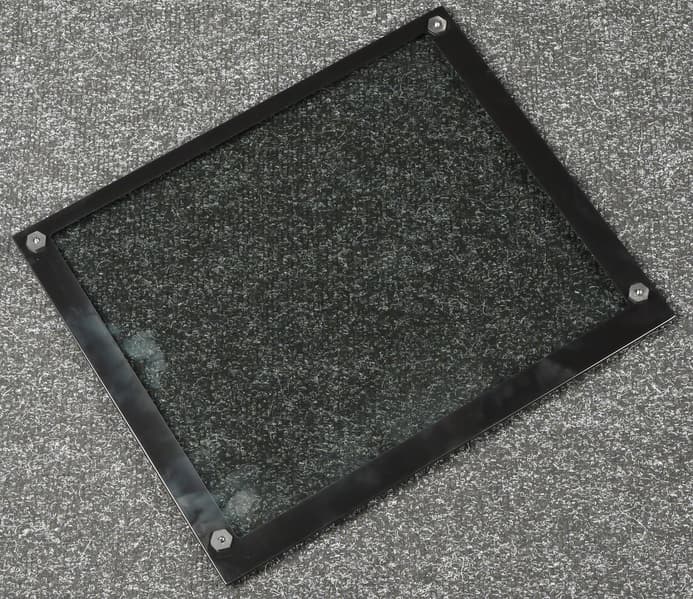 Прозрачная стенка фиксируется при помощи четырех винтов, которые вкручиваются с лицевой стороны панели. Устанавливать ее на стоящий корпус относительно удобно, так как само по себе стекло имеет небольшие размеры, а винты выполнены невыпадающими, к тому же снизу стекло встает на уступ.