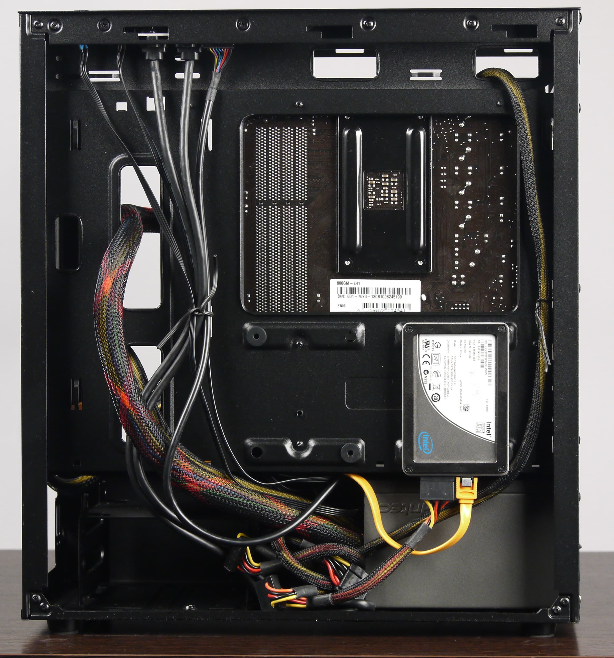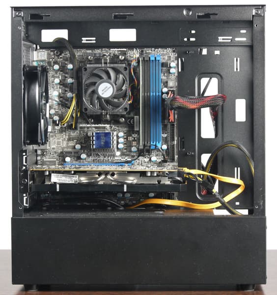 Порядок сборки ПК в данном корпусе особого значения не имеет, так как компоненты разнесены и не мешают друг другу, но лучше начать с установки блока питания и прокладки проводов.