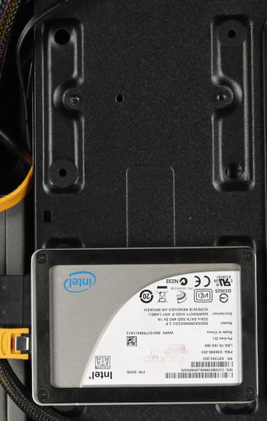 Сверху на корзине имеется четыре проушины, но закрепить там накопитель при помощи стандартных средств не представляется возможным, хотя если сильно захотеть, это вполне возможно.