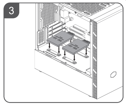 Сразу стоит пояснить, что втулки в монтажные отверстия корпуса вдевать придется сборщику, так как по умолчанию они лежат в пакете вместе с винтами. Что помешало сделать это на производстве — не совсем понятно, тем более что у части корпусов Cooler Master втулки уже установлены по умолчанию.