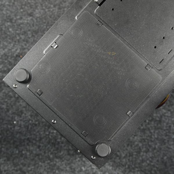 Фильтр под блоком питания выполнен из крупноячеистой сетки, которая представляет собой проштампованный лист пластика с круглыми отверстиями. Рамки он не имеет. И если снять его на ощупь еще как-то можно, то поставить обратно уже затруднительно. Крепление фильтра не очень надежное, он легко выпадает при передвижении корпуса по полу, особенно с ковровым покрытием.