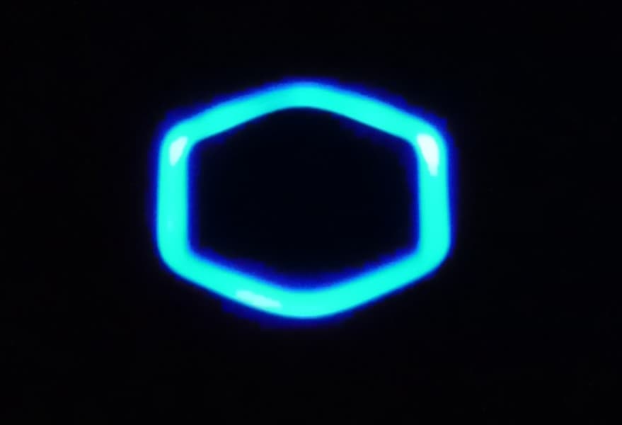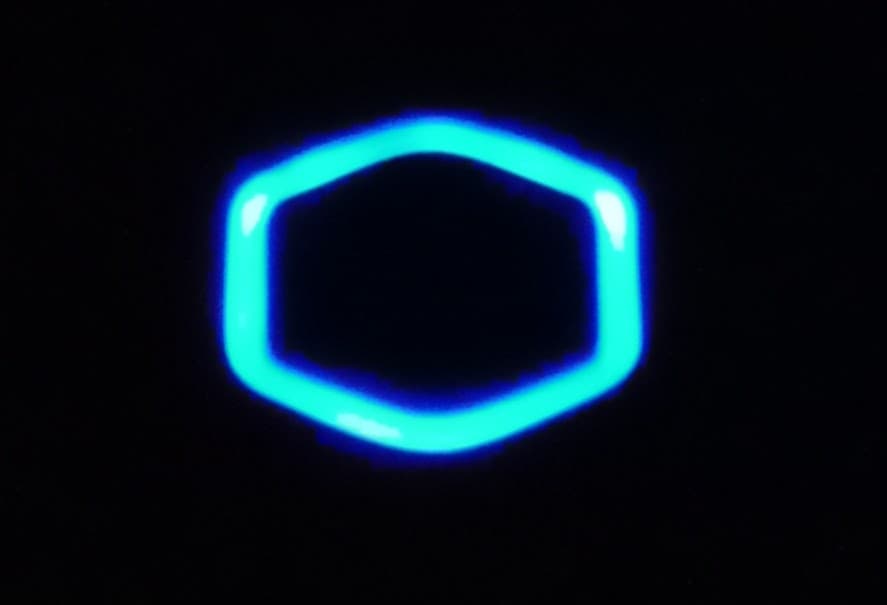 В переднюю панель встроен световод в форме фирменного шестигранника, который, по задумке создателей, должен демонстрировать внутреннюю подсветку при ее наличии. Свет он действительно пропускает.