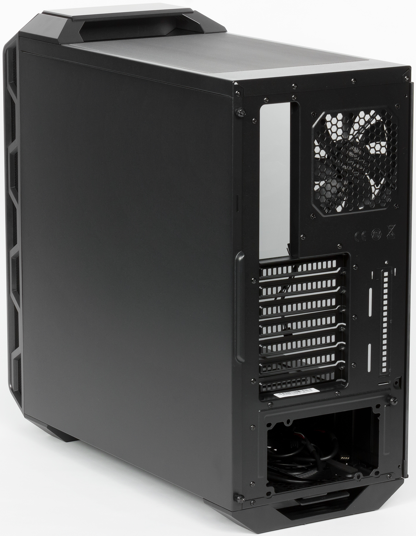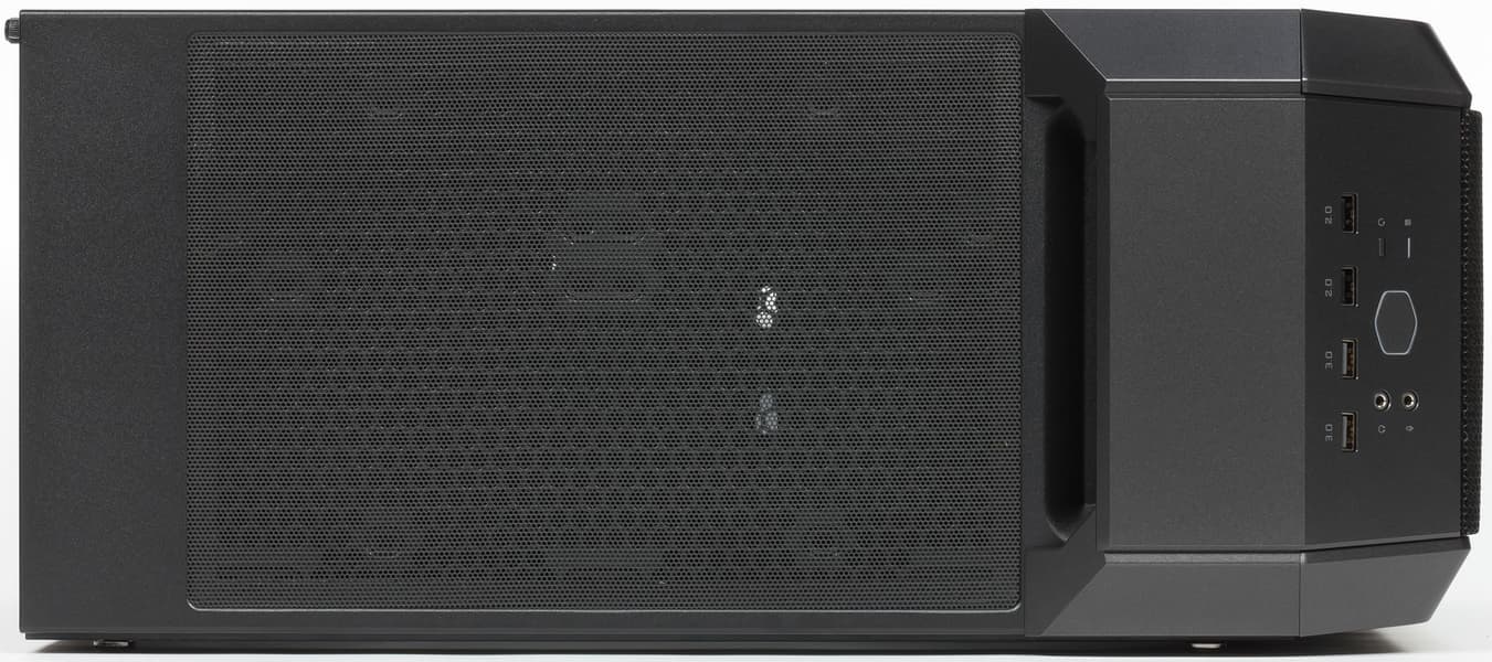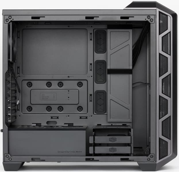 Из дополнительных отверстий есть только прорези в заглушках слотов расширения. Отверстий для внешних СВО, которые сплошь и рядом встречаются даже в самых дешевых корпусах, в MasterCase H500 нет. Такие системы охлаждения не являются широко распространенными, и потому подавляющему большинству возможных покупателей каких-то проблем это не доставит.