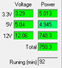 При типичном распределении мощности по каналам отклонения от номинала не превышают 1% по каналу +3.3VDC, 2% по каналу +5VDC и 1% по каналу +12VDC.