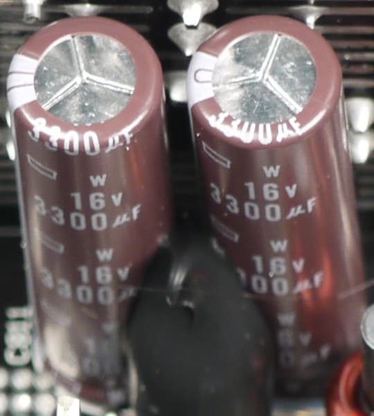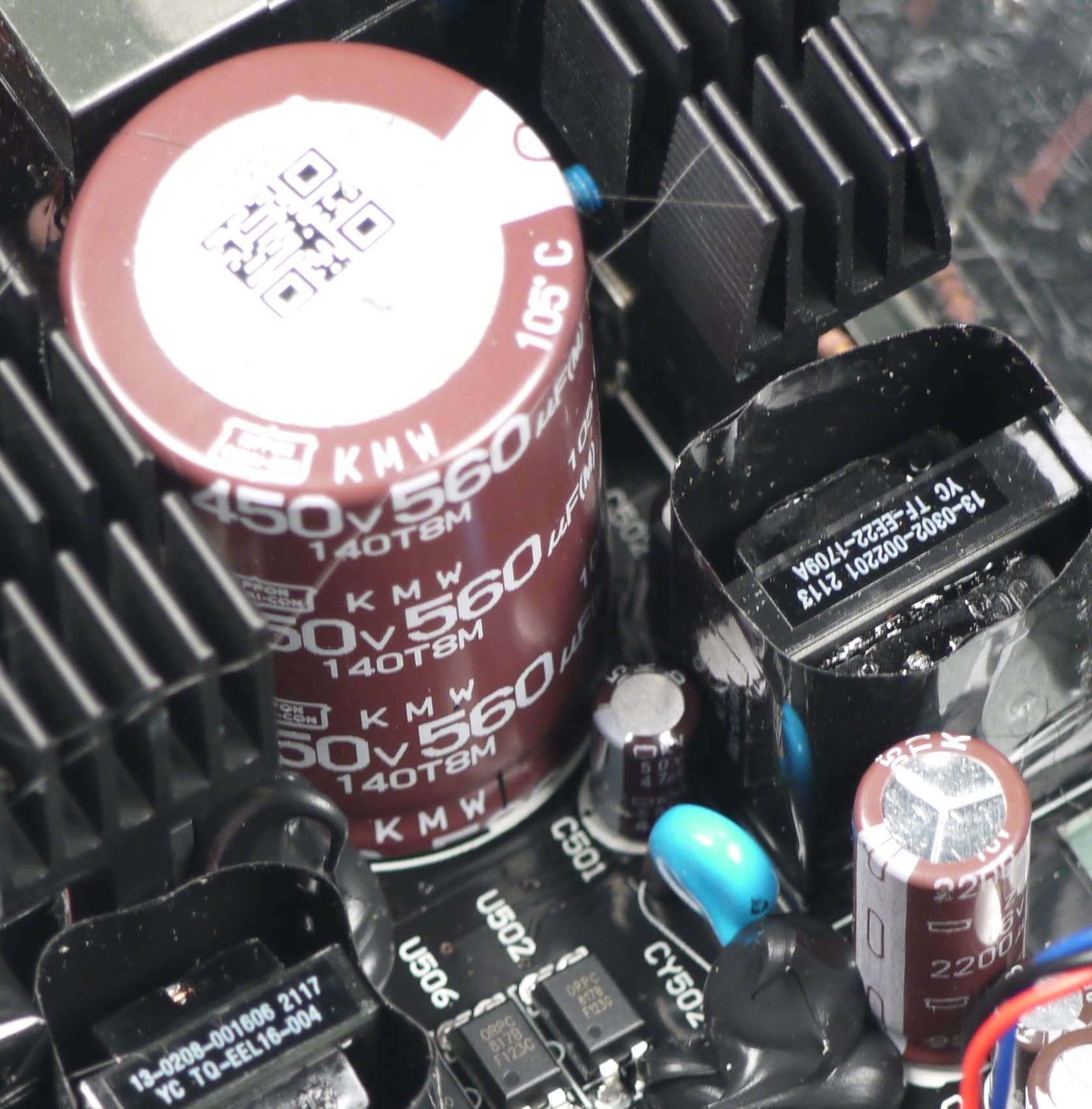 В блоке питания используются конденсаторы японских производителей — в основном под торговыми марками Nichicon и Nippon Chemi-Con.