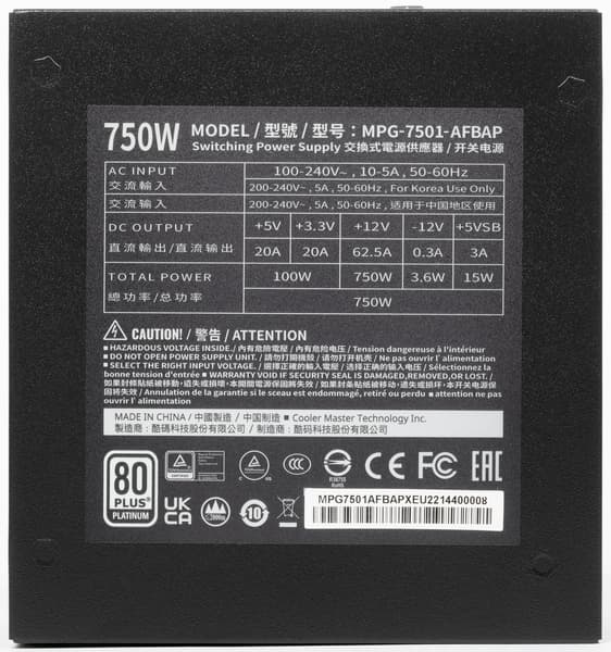 Компания Cooler Master предоставила нам на тесты оригинальный блок питания с цифровым индикатором на боковой панели, USB-разъемом и программной поддержкой — XG Plus 750 Platinum (MPG-7501-AFBAP-XEU).