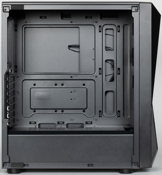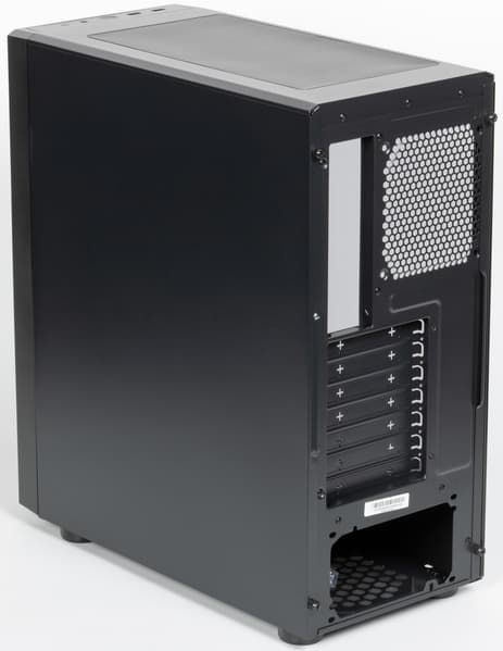 Компоновочные решения данной модели определяются современными тенденциями корпусостроения. В данном случае разработчики отказались от отсека для устройств формата 5,25″, а привычный отсек для устройств 3,5″ расположен около передней стенки шасси, но присутствует он в усеченном виде — всего на два диска. При желании его можно снять, открутив винт.