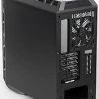 Предусмотрен и иной способ размещения видеоадаптеров, вертикальный, для чего на задней стенке есть две вертикальные прорези с заглушками. Понятно, что при этом потребуется еще и райзер (riser, переходник-удлинитель для шины PCI-E), но в перечне аксессуаров Cooler Master его нет. Точнее, он есть, но поставляется вместе с металлическим держателем видеокарты, который не подходит к данному корпусу, поэтому придется либо переплачивать за держатель, либо искать райзер стороннего производителя.