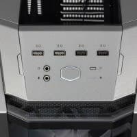 Как и в других корпусах серии, органы управления и внешние порты расположены очень удачно: на широком наклонном переходе от лицевой панели к верхней. Таким образом, они будут легко доступны при любом размещении компьютера — на столе, на полу или на низкой подставке. Правда, в данном случае угол наклона панели управления таков, что она «смотрит» скорее вверх, чем вперед, и если сидящий рядом с компьютером оператор имеет рост ниже среднего, то при настольной установке ему, скорее всего, придется приподниматься или даже вставать.