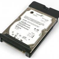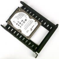 Салазки целиком пластиковые, передняя грань оформлена поворотной деталью, которая одновременно служит рукояткой для извлечения из стойки и креплением: с одной стороны у нее защелка, с другой фиксирующий выступ. Днище имеет отверстия, способствующие охлаждению нижней стороны накопителя, на которой расположена плата с электронными компонентами.
