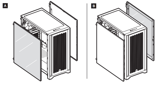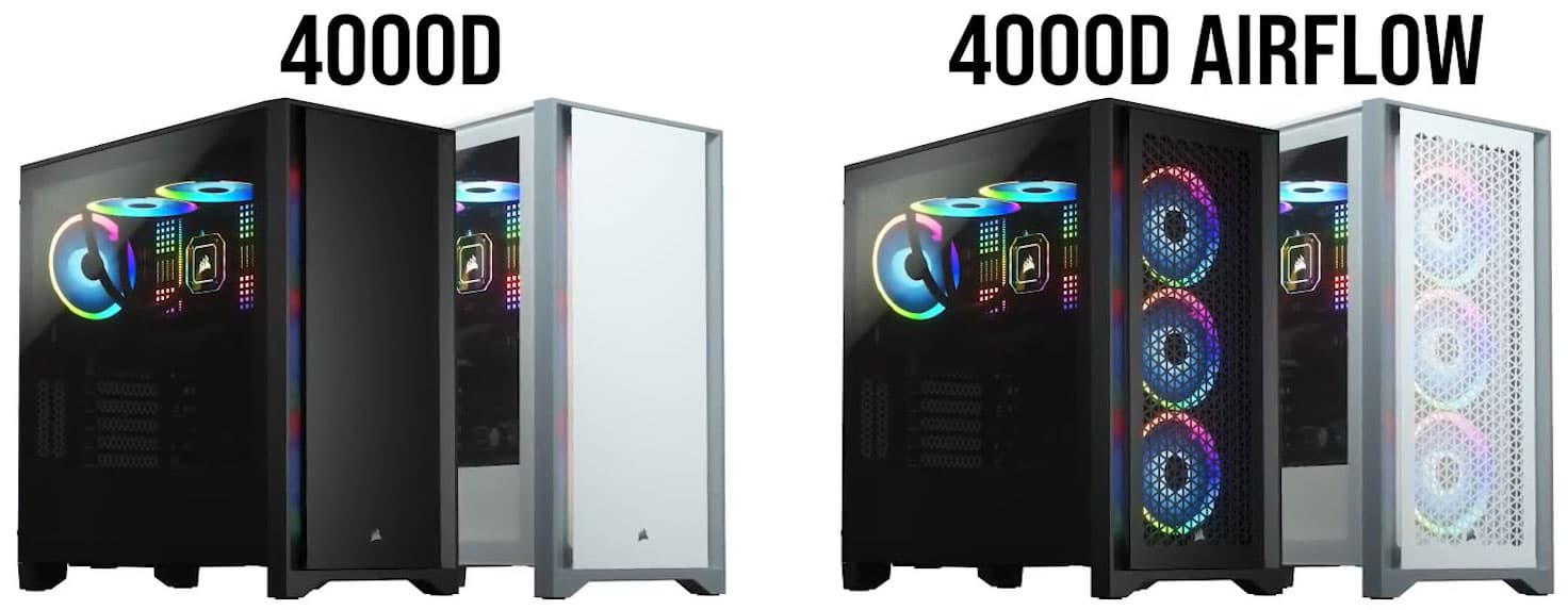Существуют еще две модификации данного корпуса: Corsair 4000D Airflow с сетчатой передней панелью и Corsair iCue 4000X RGB со стеклянной передней панелью. Шасси у всех этих корпусов идентично.