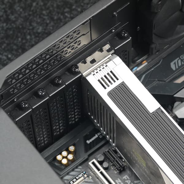Система фиксации карт расширения самая обычная: крепление на винтах изнутри корпуса с индивидуальной фиксацией. Все заглушки для плат расширения съемные, фиксируются одним винтом с накатной головкой.
