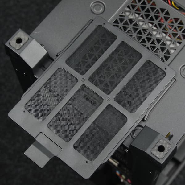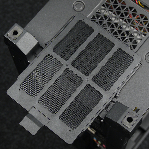 Фильтр для верхней стенки удобнее всего снимается и ставится на место благодаря магнитной окантовке, однако выполнен он из достаточно крупной пластиковой сетки, а потому бо́льшая часть мелких пылинок просочится сквозь него в корпус. С другой стороны, он отлично поможет от падения внутрь корпуса монет, ключей, каких-либо мелких предметов, да и от части пыли тоже спасет.