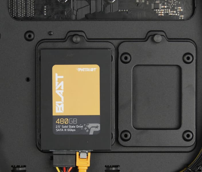 На оборотной стороне основания для системной платы присутствуют места для установки 2,5-дюймовых накопителей. А вот посадочные места для накопителей с внешним доступом в корпусе полностью отсутствуют.
