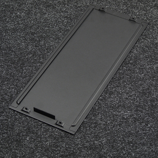 Стенка из закаленного стекла фиксируется при помощи пластиковых распорных элементов и двух винтов с накатной головкой, которые вкручивается традиционно — в заднюю стенку корпуса. На винтах имеется противосъемная нарезка, то есть винты «невыпадающие». После откручивания винта стенка не отваливается сама собой: для извлечения ее нужно отклонить вбок, преодолев усилие распорных элементов сзади. Для этого на панели предусмотрен специальный упор для пальцев.