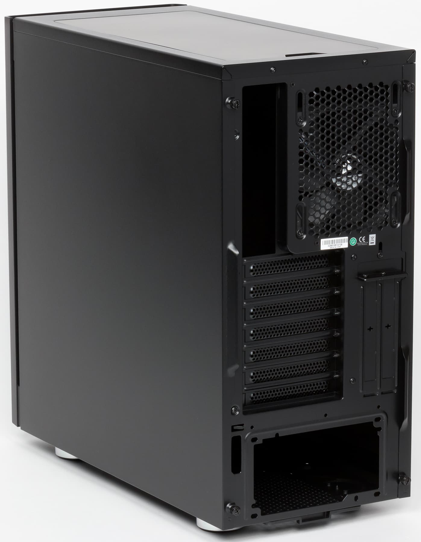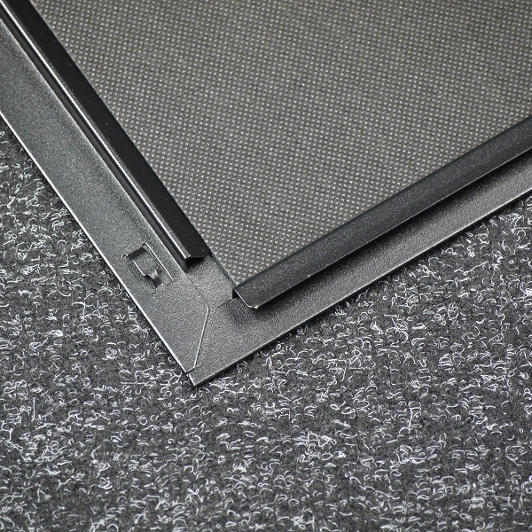 Боковые стенки выполнены из стали толщиной около 0,6 мм, с внутренней стороны они оклеены синтетической тканью толщиной около 2 мм, по фактуре она чем-то отдаленно напоминает вельвет. Вряд ли от нее стоит ожидать заметного шумоизолирующего эффекта, но некоторое приглушение ткань, возможно, обеспечит. Однако основную роль в плане шумоизоляции в таких корпусах обычно играют все-таки сплошные панели.