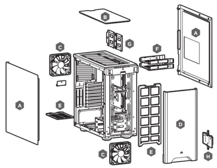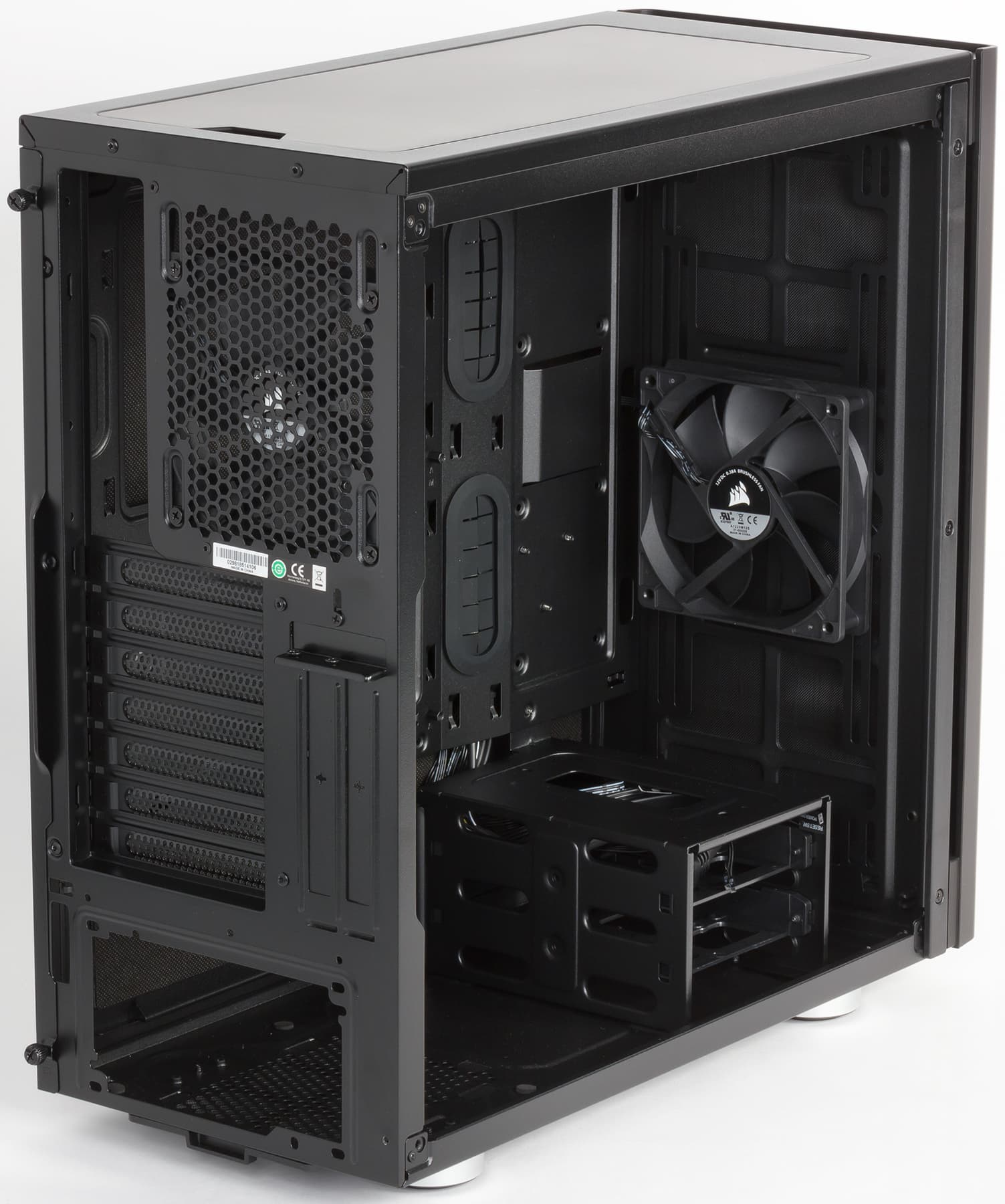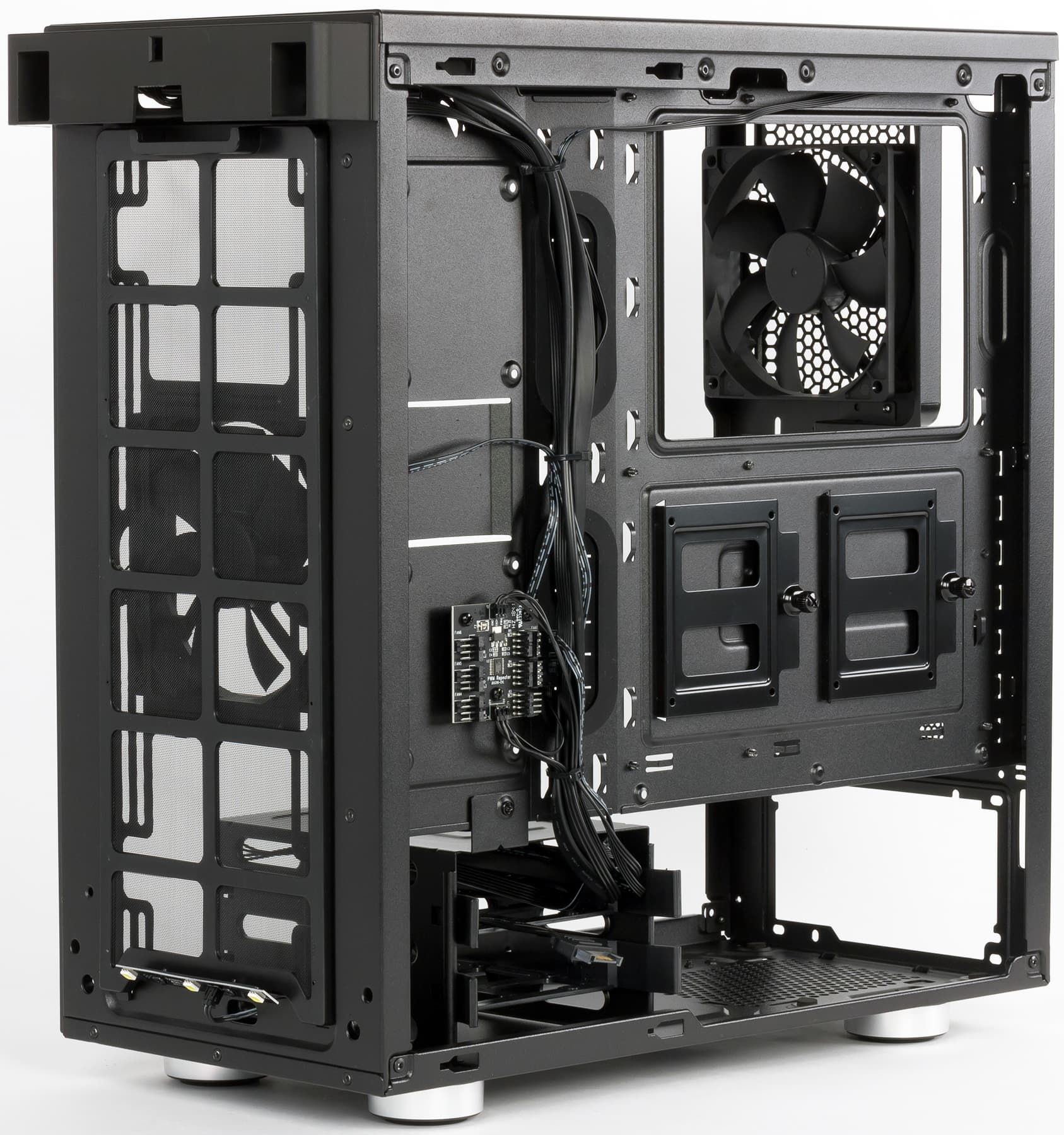 В корпусе предустановленны два вентилятора типоразмера 120 мм: один спереди и один сзади. Вентиляторы имеют стандартные четырехконтактные разъемы с возможностью подключения к системной плате с поддержкой ШИМ-управления.