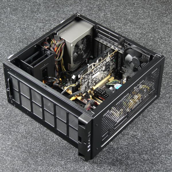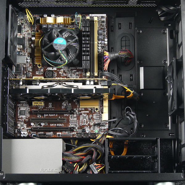 Собирать системы повышенной мощности и с большим количеством дополнительного оборудования, в частности СЖО, тут не очень удобно из-за небольших габаритов корпуса, хотя техническая возможность для этого имеется. Лучше все же ограничиться большим башенным или даже боксовым кулером.