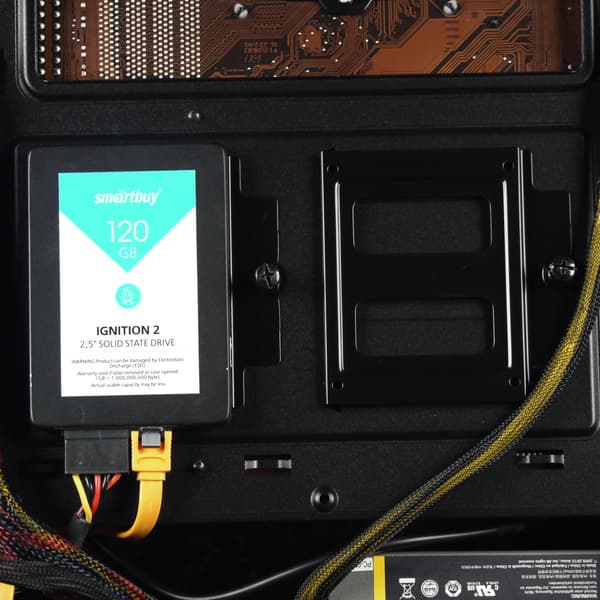 Всего тут можно установить шесть накопителей формата 2,5 дюйма или 2×3,5″ и 4×2,5″. Этого вполне достаточно для типичного домашнего компьютера невысокой ценовой категории.