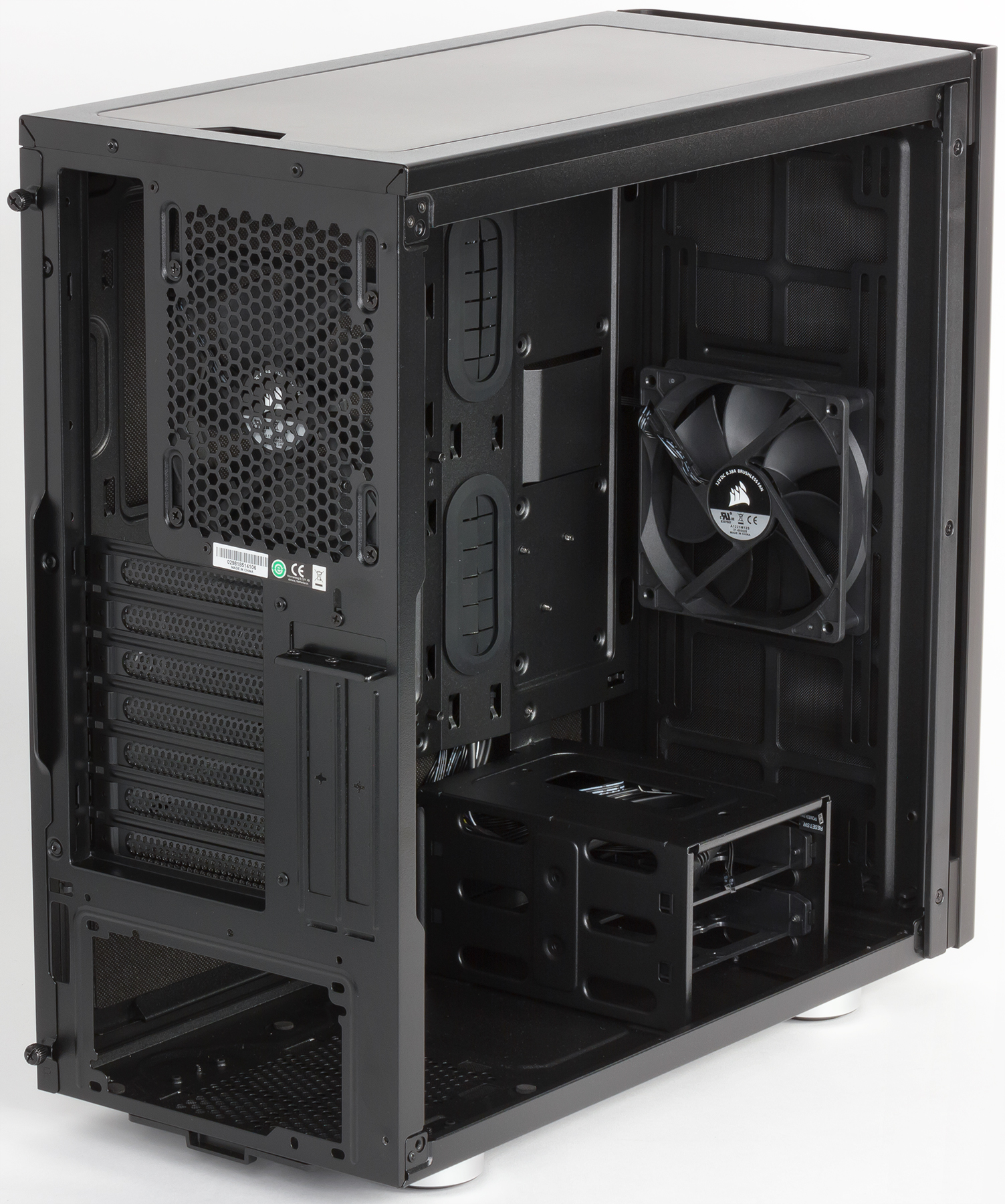 В корпусе предусмотрена возможность установки вентиляторов типоразмера 120 и 140 мм. Посадочные места для них имеются спереди, сверху и сзади.