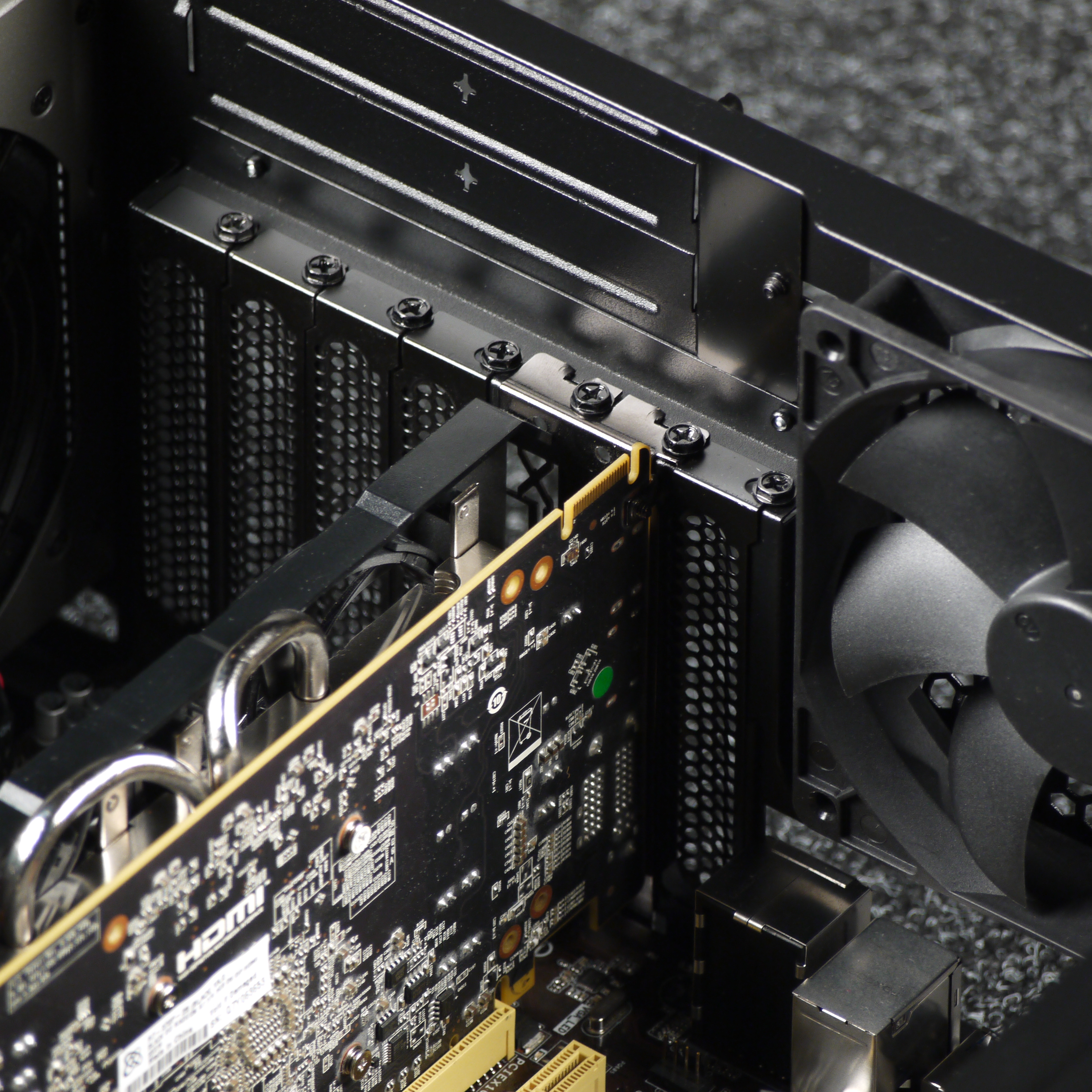 Система фиксации тут самая обычная — крепление на винтах изнутри корпуса с индивидуальной фиксацией. Все заглушки для плат расширения съемные, фиксируются одним винтом под крестовую отвертку.