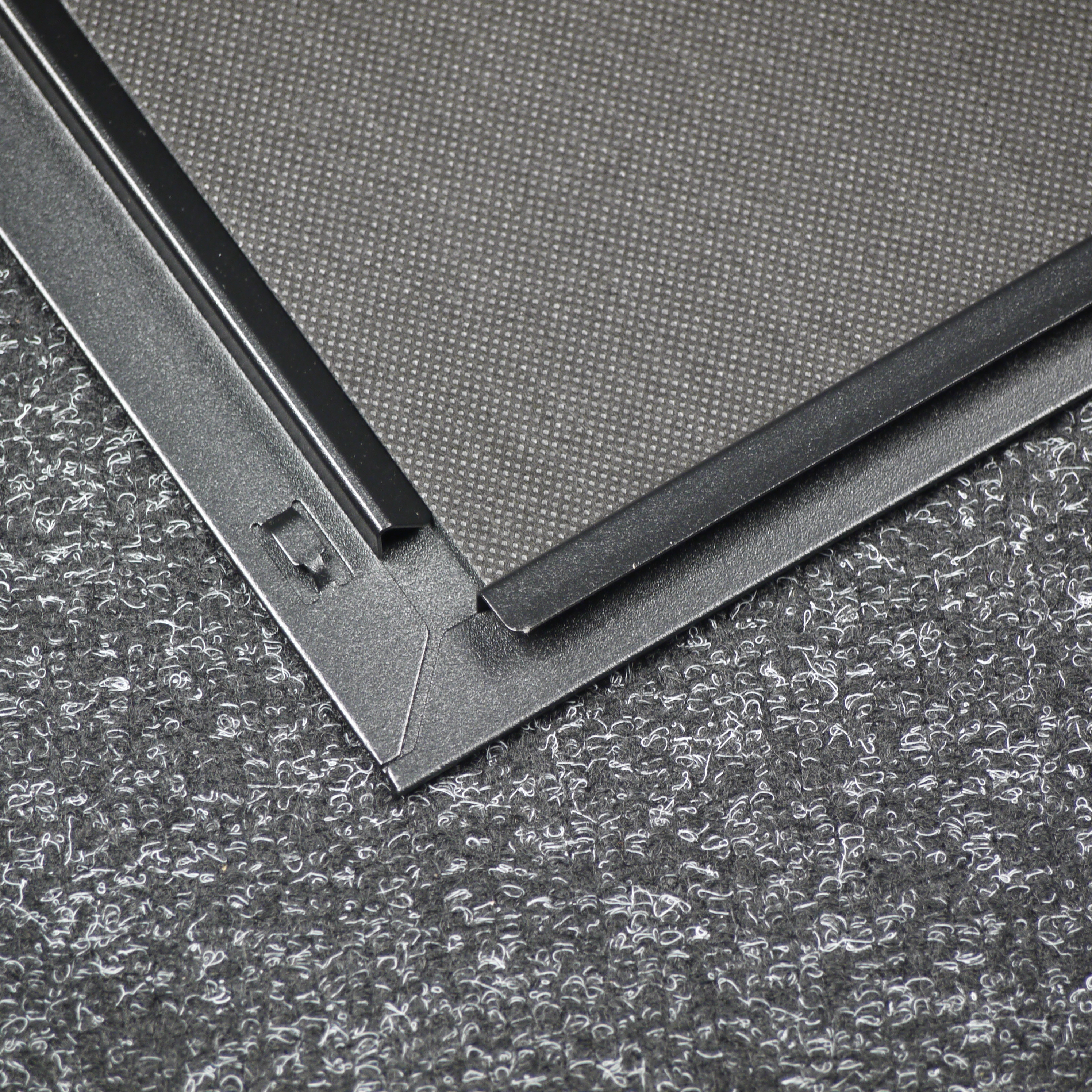Система крепления левой стенки тут представляет собой гибрид между прислонно-сдвижной системой с пазами и распашной системой с П-образной вальцовкой верхней и нижней граней панели. В данном случае пазов нет, а вальцовка не П-образная, а ближе к треугольной. В целом крепление довольно удобное. Правая стенка крепится более традиционным способом — за счет прислонно-сдвижной системы с пазами. Ставить ее менее удобно, чем левую стенку, но и тут все удобоваримо.