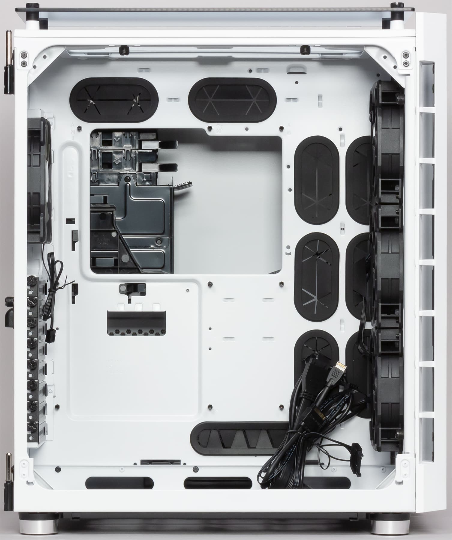 Слотов для 5,25- и 3,5-дюймовых устройств с выходом на лицевую панель в Crystal 680X не предусмотрено.