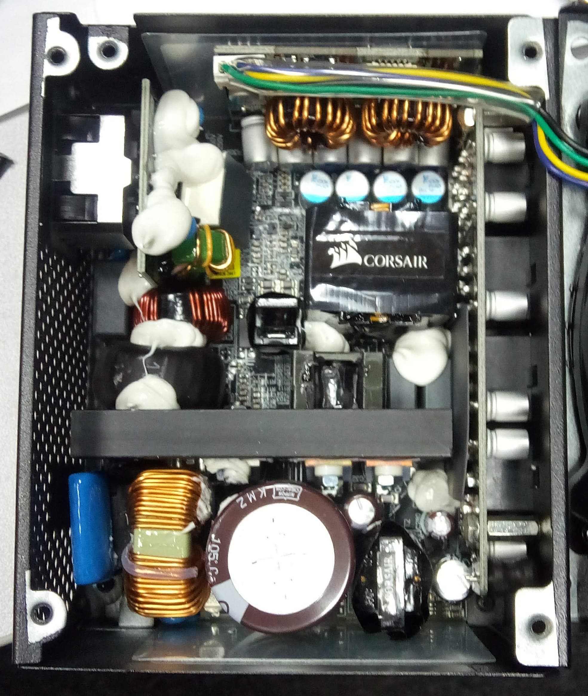 Конденсаторы в блоке питания имеют преимущественно японское происхождение. В основной массе это продукция под торговыми марками Nippon Chemi-Con и Rubycon. Установлено и большое количество полимерных конденсаторов.