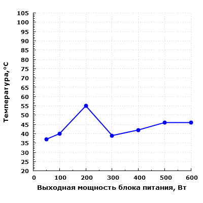 Также стоит учитывать, что в случае работы с остановленным вентилятором температура компонентов внутри БП сильно зависит от окружающей температуры воздуха, и если та установится на уровне 40-45 °C, это приведет к более раннему включению вентилятора.