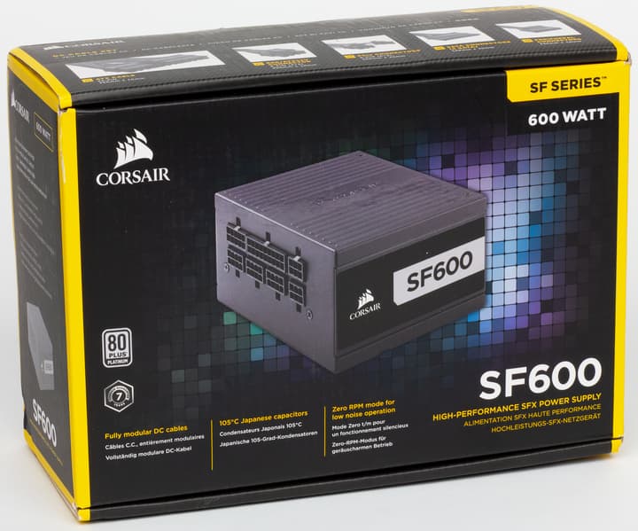 Corsair периодически обновляет свои продукты, не изменяя маркетинговые названия моделей. В этот раз подобному рестайлингу подверглась серия SF, в которой компания предлагает компактные источники питания формата SFX. Отличить версии можно по маркировке: у новой модели на 600 Вт ($150), имеющей сертификат 80+ Platinum, Part Number CP-9020182, тогда как предыдущая версия ($120) имела Part Number CP-9020105 и сертификат 80+ Gold. В российской рознице сейчас встречаются обе модификации, «платиновая» модель примерно на 1000 рублей дороже.