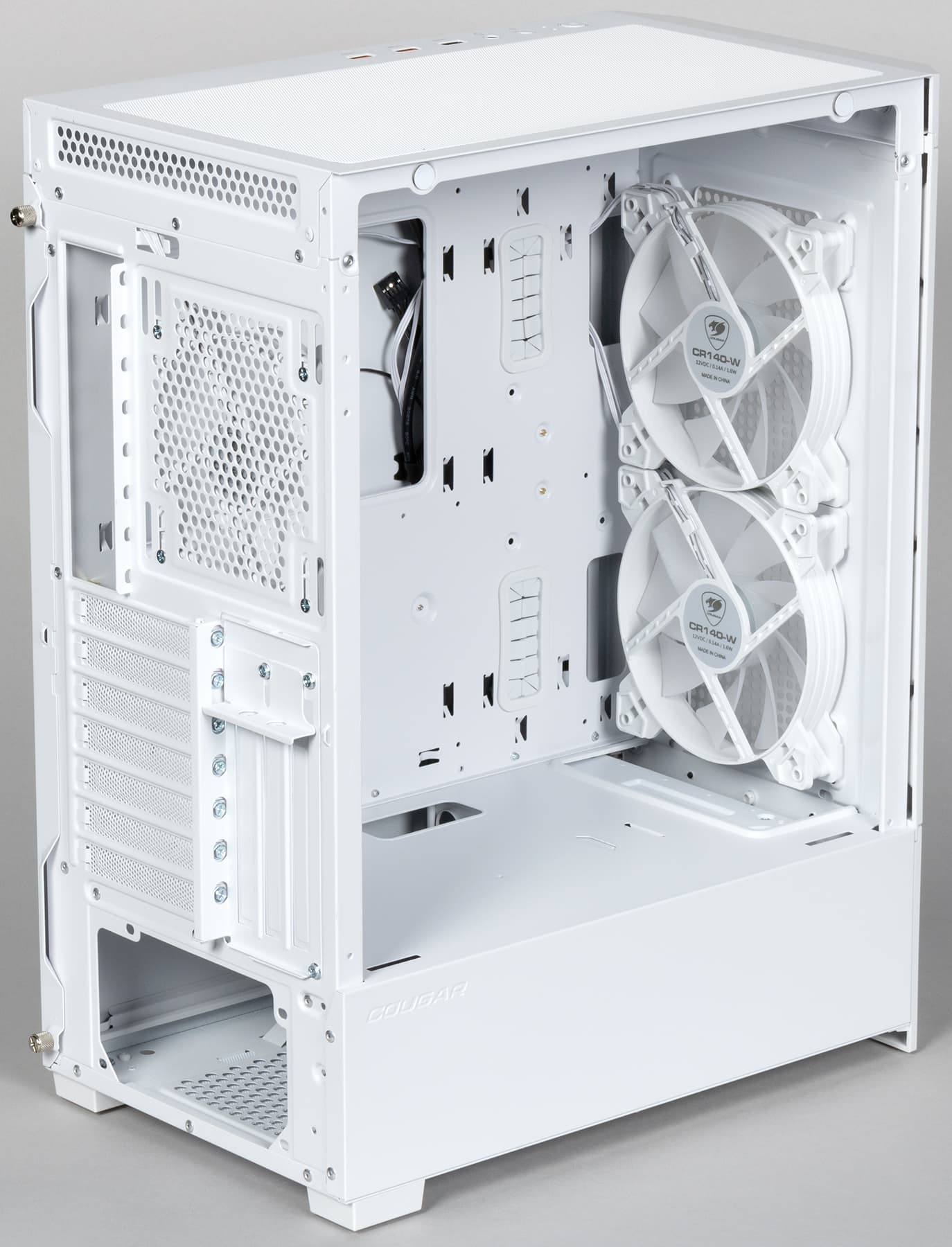 Корпус Cougar Airface RGB современно выглядит, что актуально для многих при сборке домашнего компьютера. В целом он оставил по итогам знакомства очень неплохое впечатление. Создавали его на достаточно бюджетном шасси, которое в процессе доводили до ума, однако для конечного пользователя, который не посещает регулярно недра своего компьютера, это не будет заметно. Собирать и модернизировать систему в корпусе достаточно удобно благодаря быстросъемной левой панели, которая оснащена ручкой и магнитным креплением, да и правая панель ей в этом плане не сильно уступает. Собрать игровую систему средней ценовой категории в корпусе будет несложно, да и использовать современные высокопроизводительные компоненты тоже вполне реально. Правда, далеко не все пылевые фильтры тут могут похвастаться высокой эффективностью: к переднему фильтру претензий почти нет, но нижний откровенно поставлен по принципу «чтобы было».