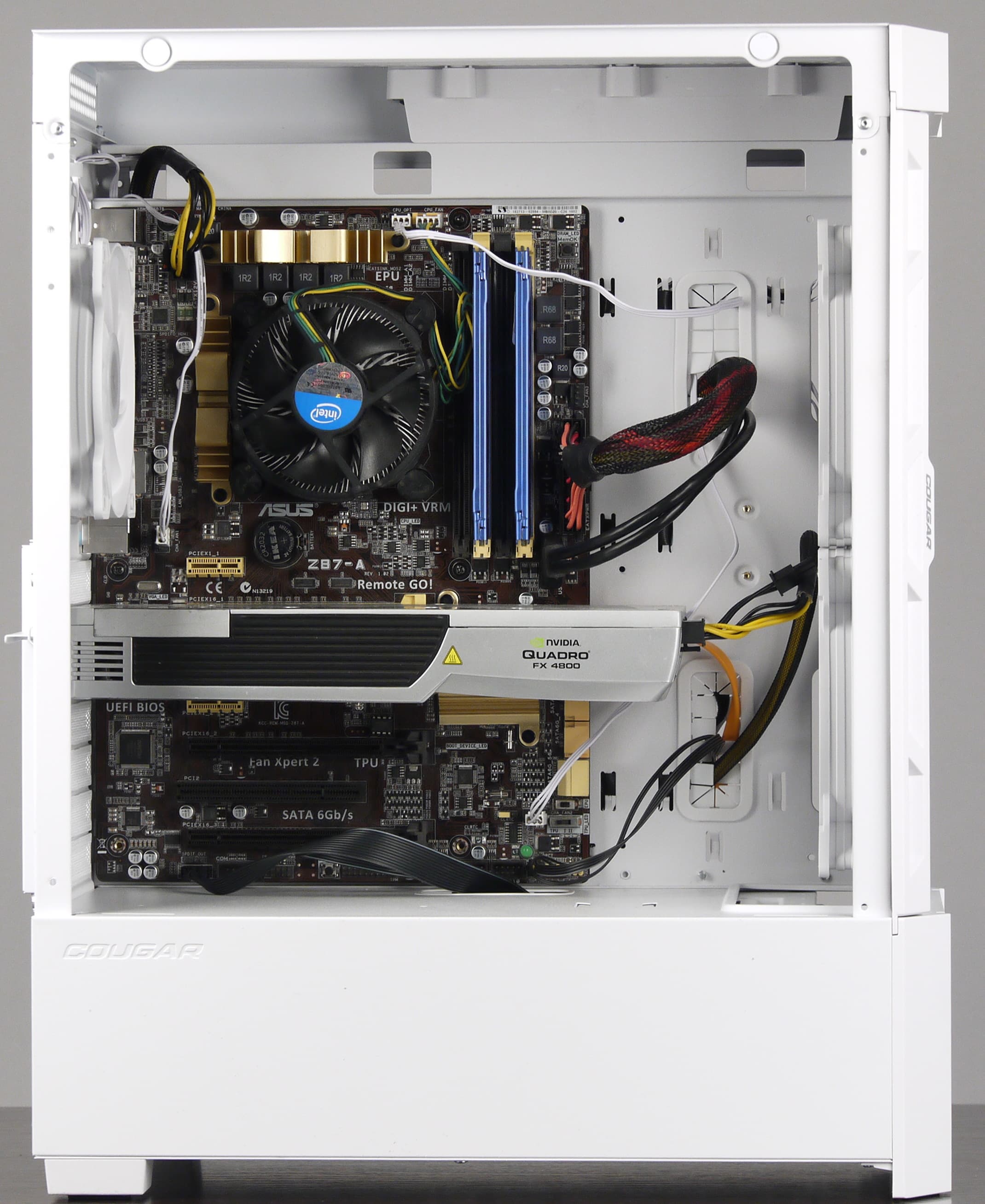 Корпус представляет собой решение башенного типа с вертикально размещаемой платой формата E-ATX (шириной до 330 мм) или ATX (и менее габаритной) и горизонтальным расположением блока питания снизу. Кожух закрывает место установки блока питания со стороны левой стенки, придавая внутреннему виду корпуса аккуратность и законченность. Также кожух исполняет роль своеобразного элемента жесткости, который обеспечивает дополнительную фиксацию основания для системной платы с нижней стороны.
