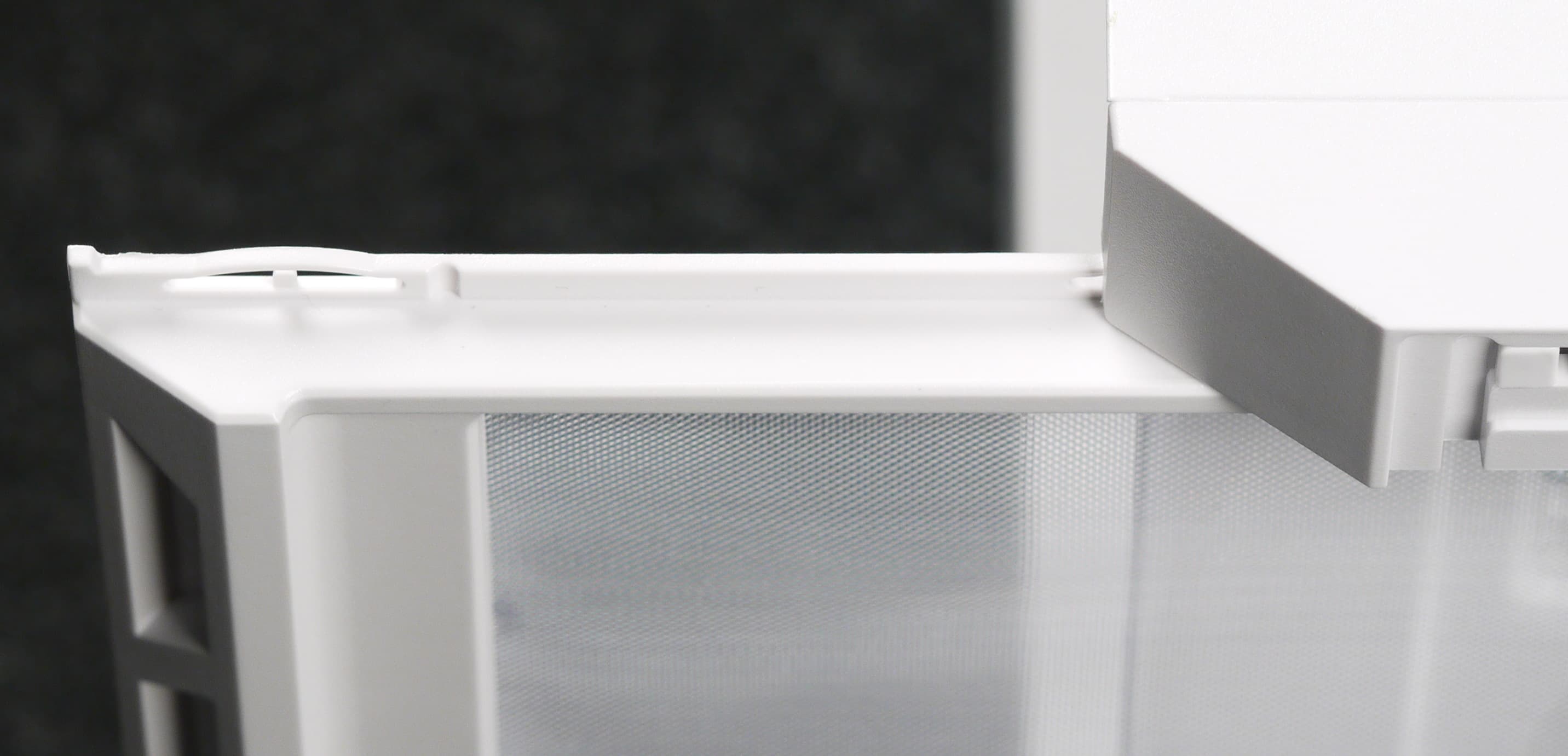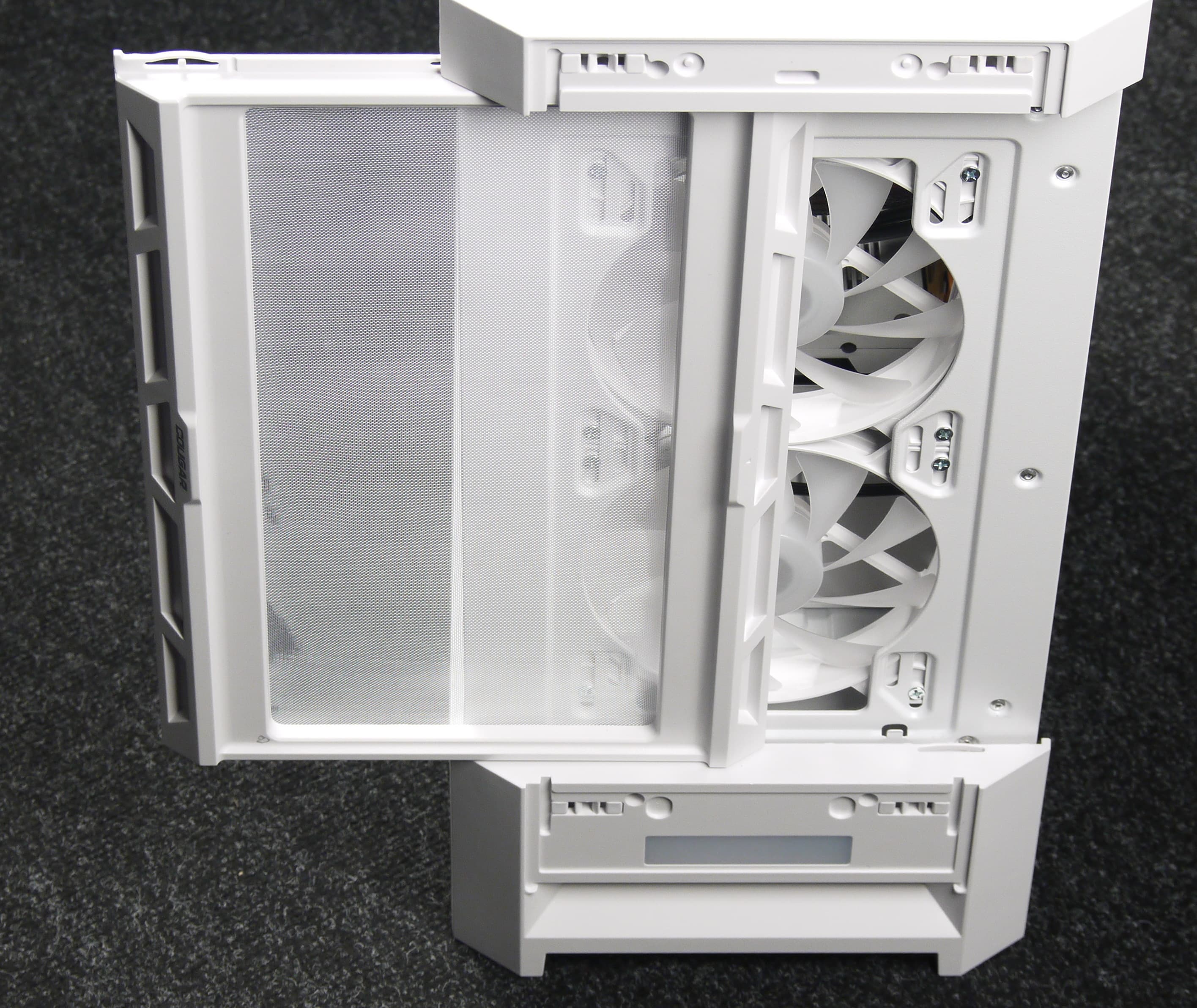 Фильтр для верхней стенки удобнее всего снимается и ставится на место благодаря магнитной окантовке, однако выполнен он из достаточно крупной пластиковой сетки, а потому бо́льшая часть мелких пылинок просочится сквозь него в корпус. С другой стороны, он отлично поможет от падения внутрь корпуса монет, ключей, каких-либо мелких предметов, да и от части пыли тоже спасет.