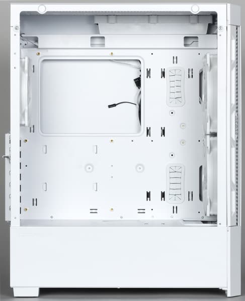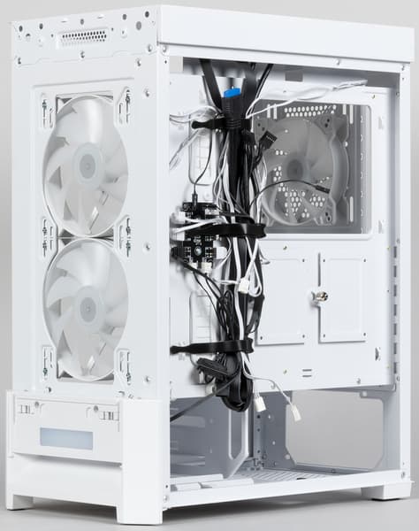 Как можно догадаться по названию, корпус оснащен полнофункциональной RGB-подсветкой. Существует два цветовых варианта: черный и белый. Также существует модификация без RGB-подсветки, которая отличается комплектом вентиляторов и представлена только в черном цвете. Металлические элементы корпуса окрашены вполне добротно — видимо, порошковой краской.