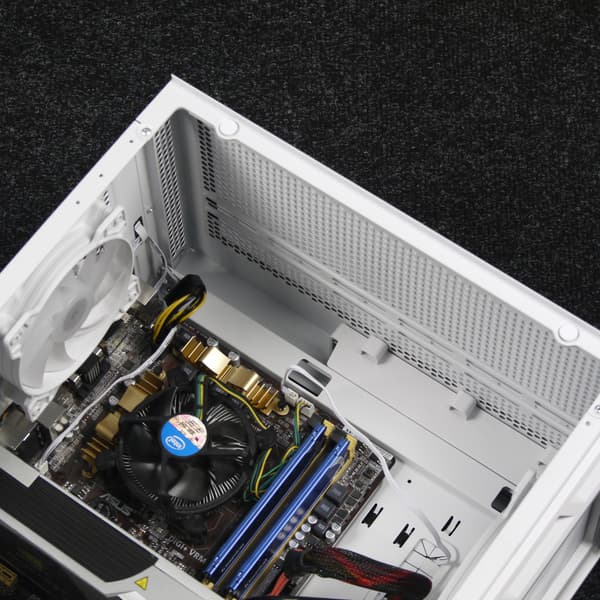 Порядок сборки ПК в данном корпусе особого значения не имеет, так как компоненты разнесены и не мешают друг другу, но лучше начать с установки блока питания и прокладки проводов.
