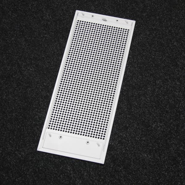 Между двух деталей вставляется пылевой фильтр, который размещается в пазах. Поверх пылевого фильтра установлена стальная перфорированная лицевая панель, которая фиксируется при помощи шарообразных распорных элементов, ответные части для которых находятся в двух пластиковых деталях основания передней панели, а также похожих по конструкции пластиковых элементов, находящихся на деталях основания передней панели.