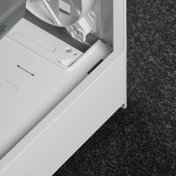 Шасси корпуса используется бюджетное, но вполне качественное, что особенно заметно при знакомстве с корпусом изнутри. Заметны усилия, направленные как на увеличение жесткости конструкции путем использования деталей специальной формы, так и на увеличение удобства при сборке. За счет особенностей конструкции жесткость корпуса на скручивание можно считать если и не высокой, то вполне приличной, особенно у собранной системы. Этому сильно способствуют частично несъемная левая стенка и ее стеклянная панель, а также относительно небольшая глубина шасси корпуса.