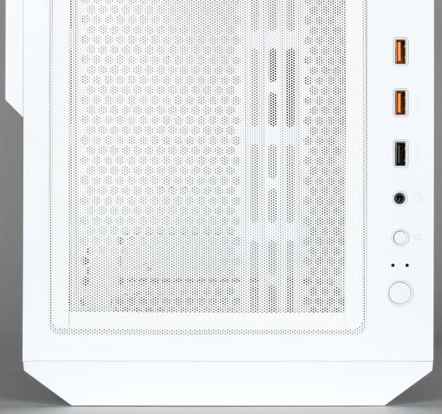 Кнопки и интерфейсные порты расположены на верхней панели вдоль правой стенки корпуса. В их числе: два порта USB3 Gen1 (USB 3.0), один порт USB 2.0, комбинированный разъем для подключения микрофона и наушников или гарнитуры, кнопка включения и кнопка перезагрузки (последняя по умолчанию используется для управления подсветкой). Кнопки немного отличаются размерами, но расположены они довольно близко друг к другу, так что в темноте их довольно легко перепутать. Портов USB все-таки хотелось бы видеть чуть больше, и уж точно не помешал бы разъем типа C.