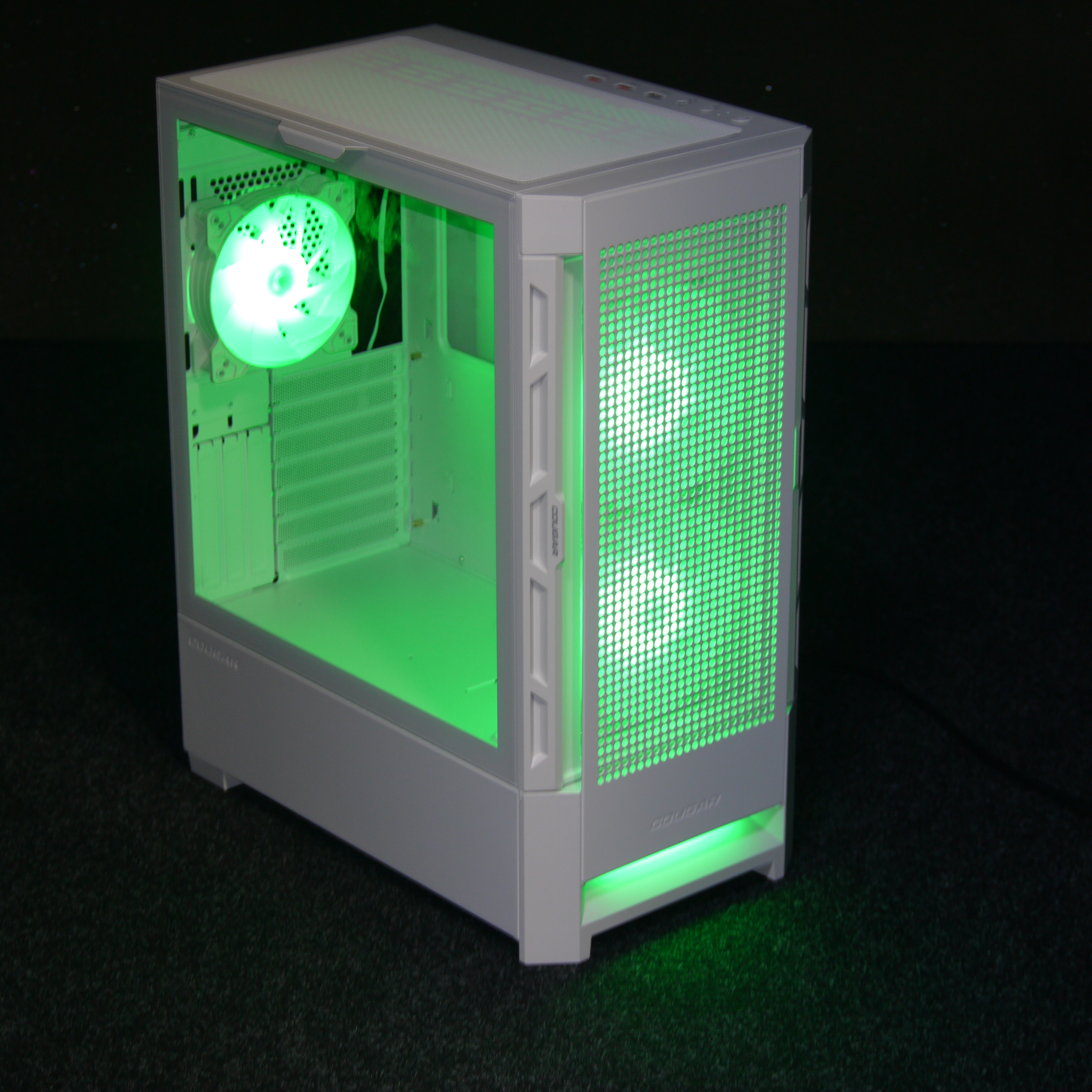 К нам на тестирование поступил относительно недорогой корпус под названием Cougar Airface RGB. Его розничная стоимость на момент публикации обзора составляла около 6 тысяч рублей.