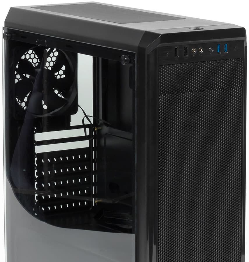 Оснащенность внешними портами здесь вполне на уровне современных требований — иметь еще и USB Type-C было бы неплохо, но такой порт пока встречается даже не в каждом гораздо более дорогом корпусе. Четырех дисковых накопителей (плюс пятидюймовое устройство: ODD, реобас и т. д.) для большинства возможных конфигураций будет вполне достаточно.