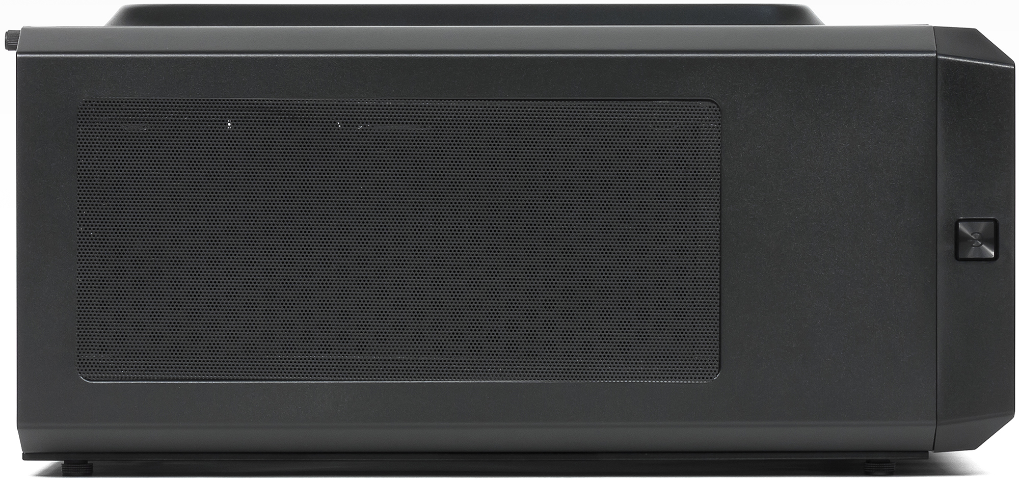 Практически вся площадь лицевой панели доступна для потоков воздуха и закрыта декоративной металлической решеткой с мелкими отверстиями в форме шестиугольников. Даже заглушка пятидюймового слота имеет такую же решетку. Естественно, имеется и фильтр, вот только снимать и обслуживать его придется вместе со всей панелью, а это, как уже отмечалось, будет сделать непросто: помешает толстый пучок отходящих от панели управления кабелей.