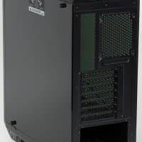 В основании системной платы имеется большое окно, позволяющее устанавливать или снимать процессорный кулер без демонтажа самой платы. Само основание занимает чуть более половины корпуса в глубину, а по вертикали внизу доходит до горизонтальной части перегородки отсека блока питания.