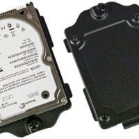 Все лотки металлические, крепятся они одинаково: с одной стороны у них невыпадающий винт с накатной головкой, с другой — пара выступов, входящих в отверстия пластин. Накопители на лотках фиксируются винтами снизу, никаких амортизаторов не предусмотрено, зато есть прямой теплоотвод от корпуса диска к металлу лотка. При подключении нужно использовать SATA-кабели с прямыми коннекторами.