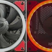 Подсветка вентиляторов сделана из целого набора светодиодов, расположенных по окружности и снабженных общим кольцевым световодом. Таким образом, при включенном питании через переднее стекло будут видны три красных кольца.
