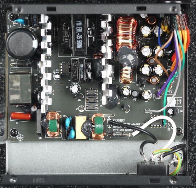 В качестве высоковольтного конденсатора тут установлена емкость под маркой Nippon Chemi-Con, низковольтные конденсаторы представлены продукцией под торговой маркой Elite.