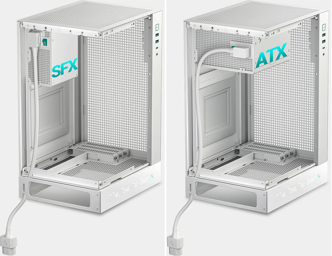 Причем для CH160 можно купить отдельно поставляемый пьедестал DeepCool Vertical Base 100 (может быть черного и белого цвета), разве что в нем нет цифровой панели, то есть получим DeepCool CH170 без добавки Digital.