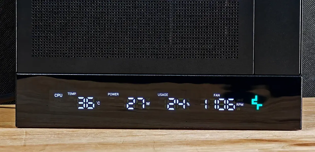 Речь пойдет про модель DeepCool CH170 Digital, которая дополнительно оснащена цифровой панелью, отображающей некоторые параметры, связанные с работой компьютера, о чем и сообщает слово «Digital» в названии.
