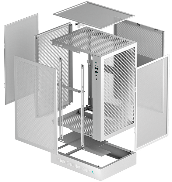 Конструктивно это уже знакомый нам DeepCool CH160, только поставленный «на попа́» и оснащенный пьедесталом, в одной из стенок которого имеется большой проем для кабелей. Тем не менее, мы дадим полное описание с учетом реалий модели СН170.