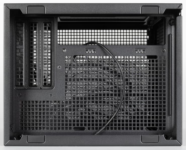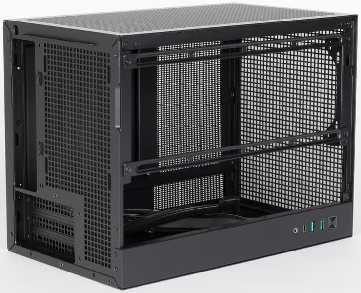 В плане размещения накопителей ситуация столь же печальная, как и у DeepCool CH160: владельцам корпуса в основном придется ориентироваться на слоты М.2, имеющиеся на системных платах Mini-ITX, поскольку вне платы предусмотрено размещение единственного HDD/SSD с размерностью 2,5 или 3,5 дюйма, да и то придется выбирать между таким накопителем и верхним вентилятором: крепежный кронштейн и место установки для них общее.